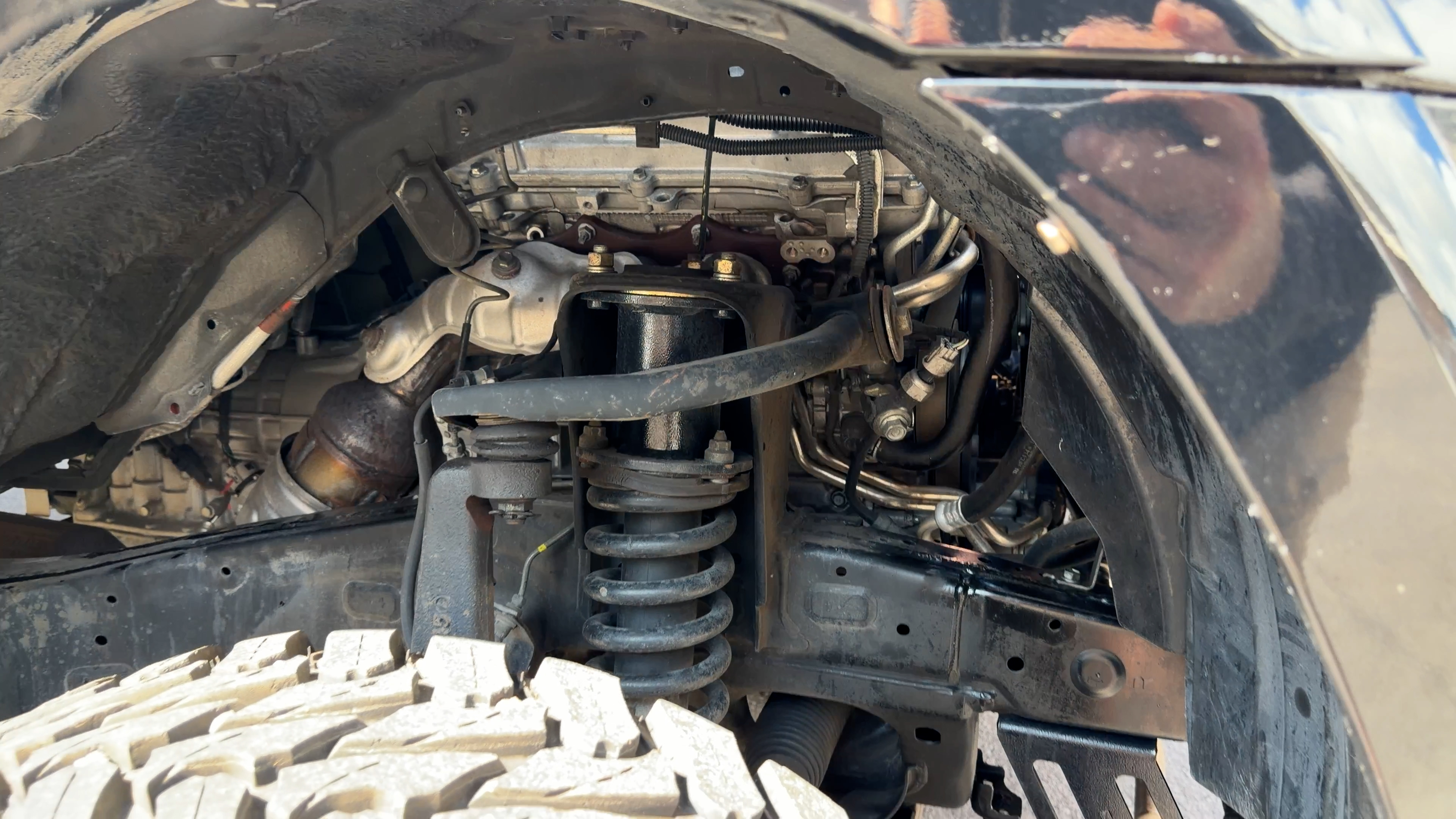 4Runner came in running good except there was no power steering. Found return hose was broken. Replaced hose and bled power steering, Operating with no other detectable leaks.