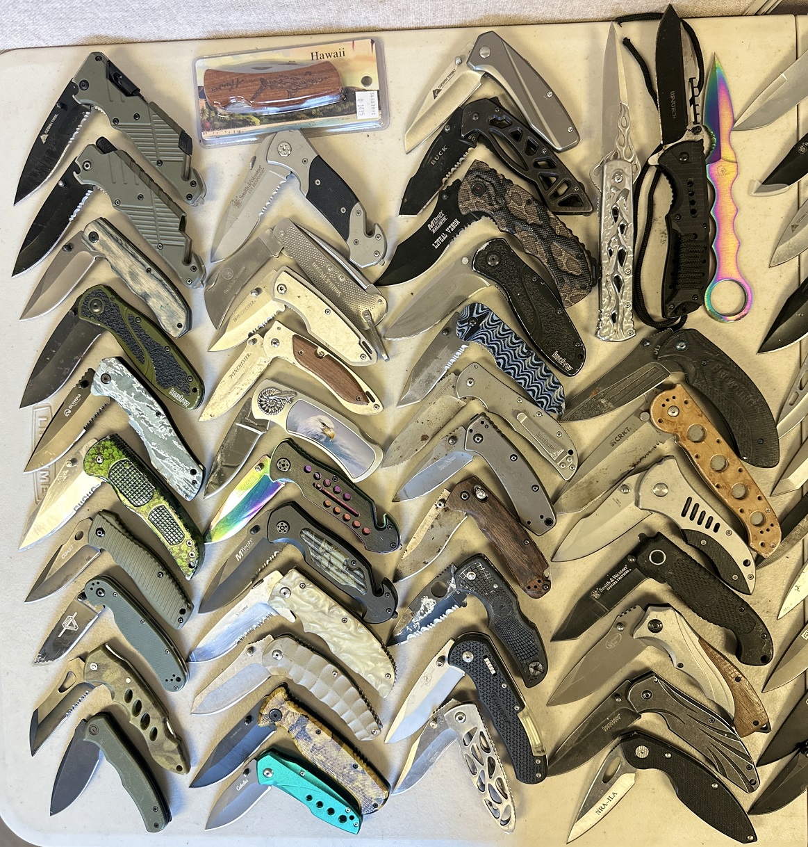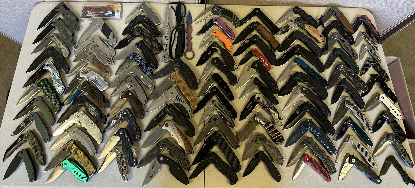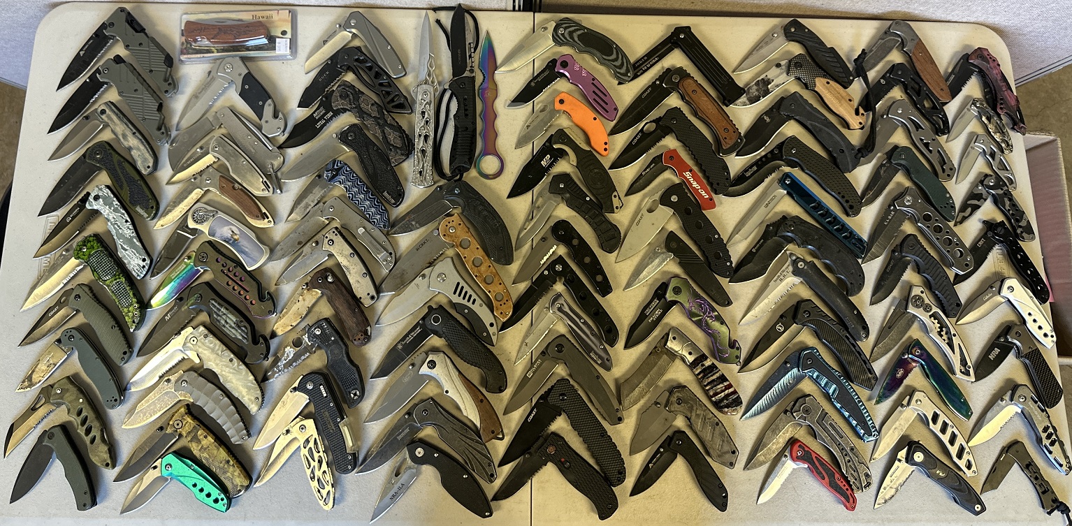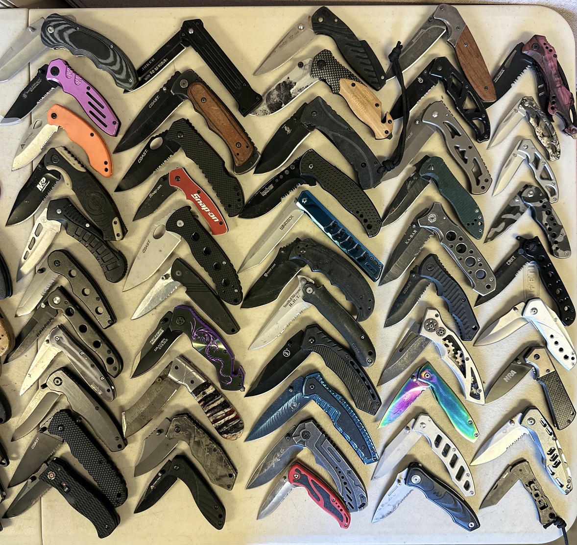 Make: Kershaw, CRKT, Benchmade, Spyderco, Ka-Bar, Buck, Winchester, Smith & Wesson, Snap-On, Leatherman, Tac-Force, Samsonite, Cabela’s, Ozark Trail, Coast, SOG, Gerber, M-Tech, Falcon, Browning, Ontario Knife Co., Falcon, etc.
