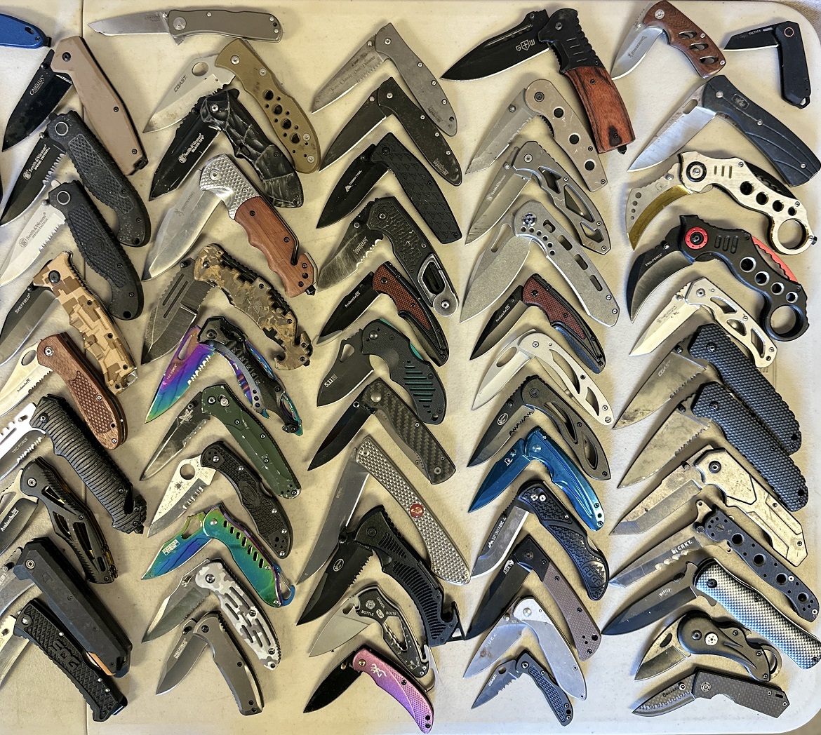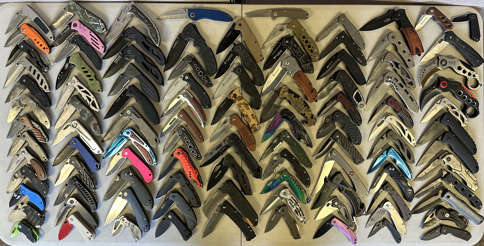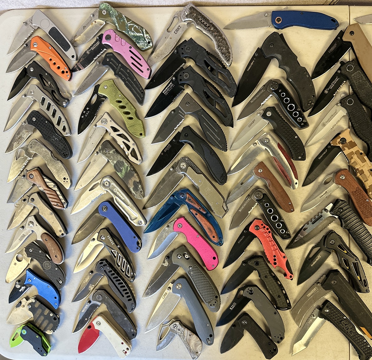 Make: Benchmade, Spyderco, Kershaw, Buck, Ka-Bar, CRKT, Smith & Wesson, Coast, SOG, Browning, Civivi, Cabela’s, 5.11+, Falcon, Wartech, Winchester, Ozark Trail, Northwest Trail, Tac-Force, NRA, Camillus, Humvee, CJRB, Recon 1, Grand Way, Avalanche, etc.