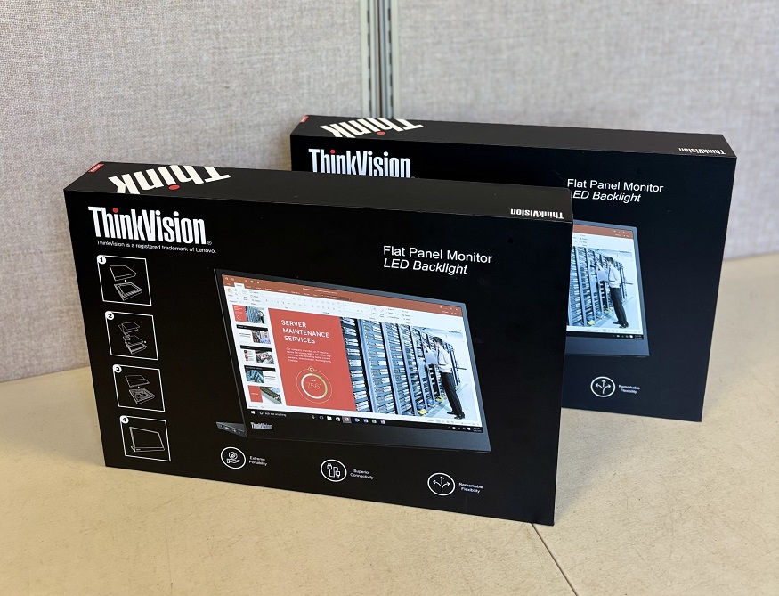2 Lenovo ThinkVision 14-inch flat panel monitors.