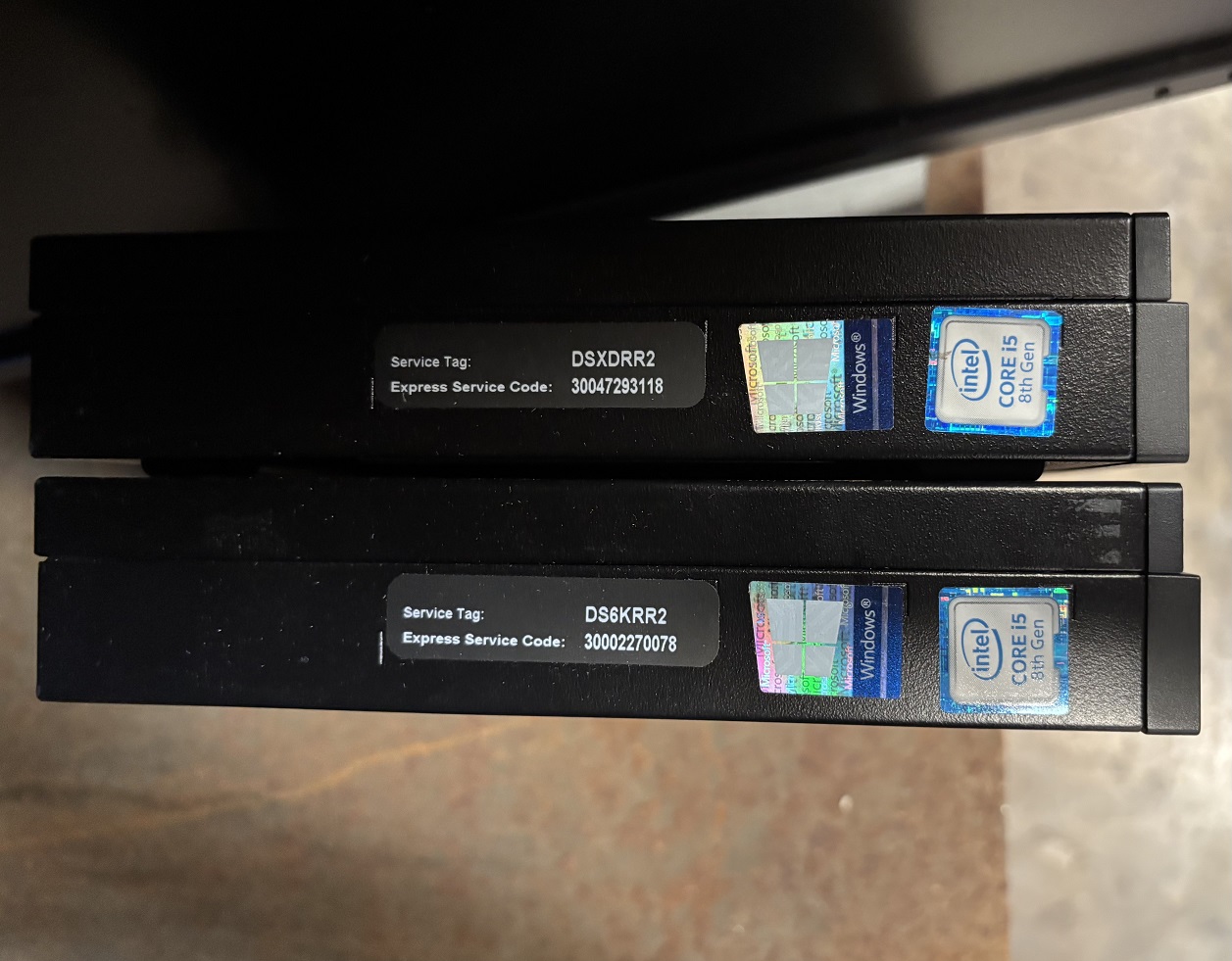 2 sets of Dell Optiplex 5060 Micro PC and Dell 22” monitor.